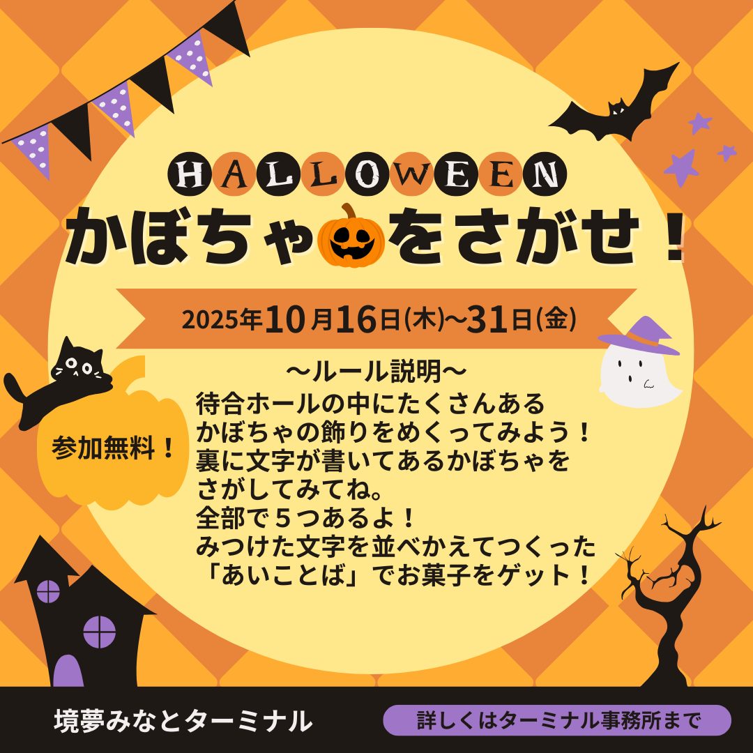 ハロウィーン仕様に飾りつけされたターミナルの待合ホールで、ターゲットのかぼちゃを探してみよう!